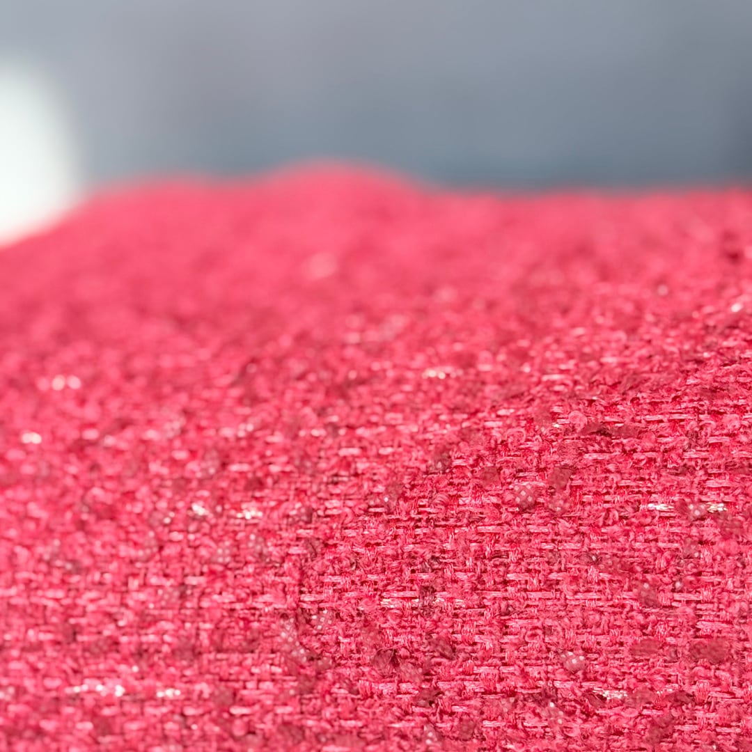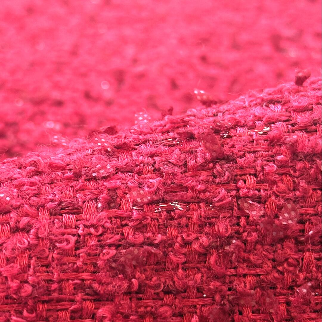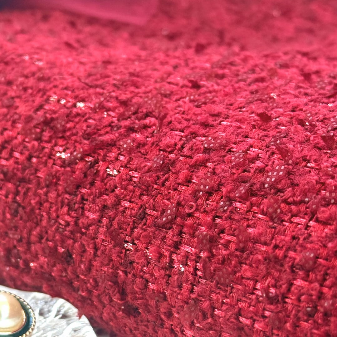 今期流行りの深みのあるレッドにバーガンディーのリボン糸が織り込まれたファブリックです。