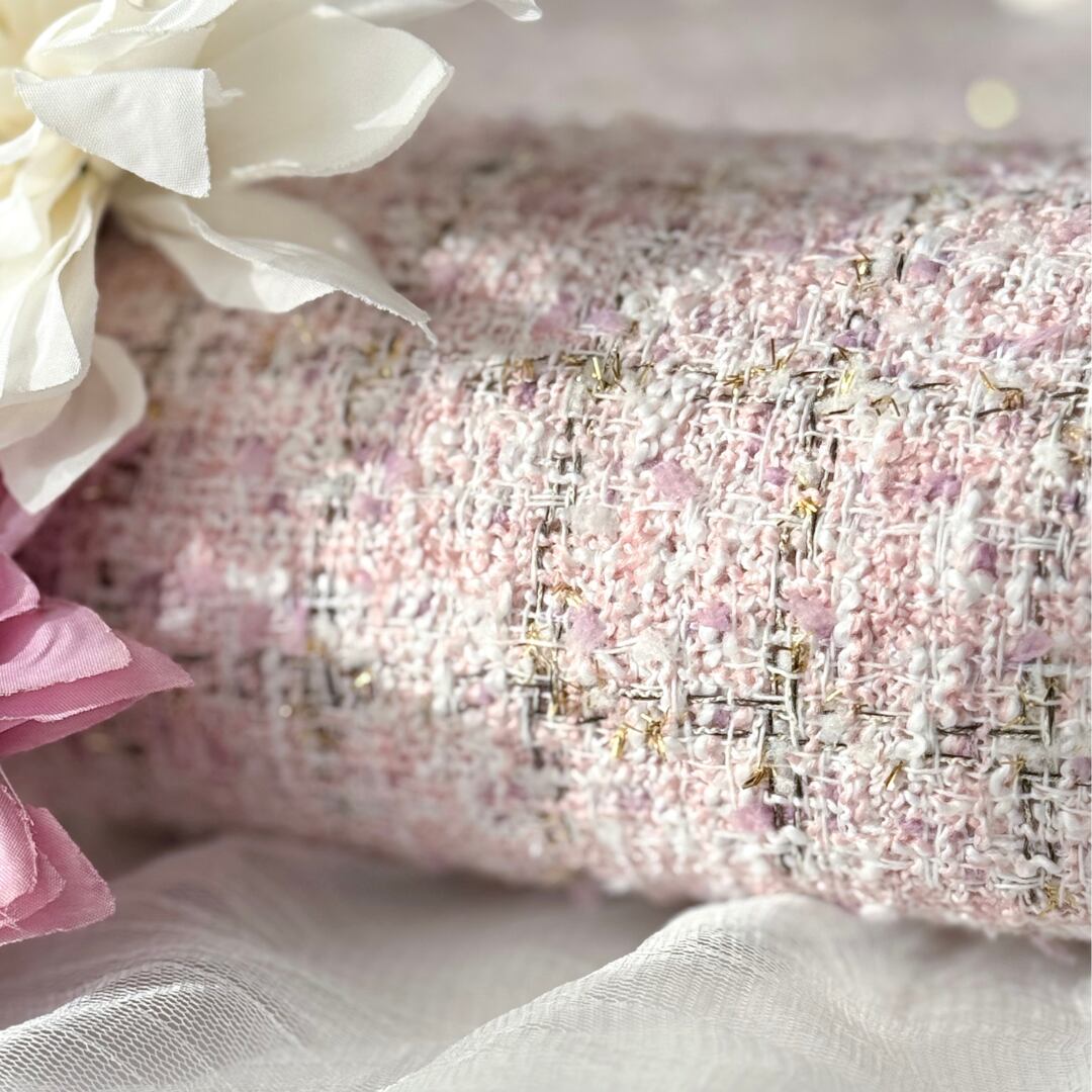 「可愛らしさ」と「上品さ」が絶妙にマッチした、大人可愛い仕上がりのツイード生地です。バッグや小物にぴったりです♡