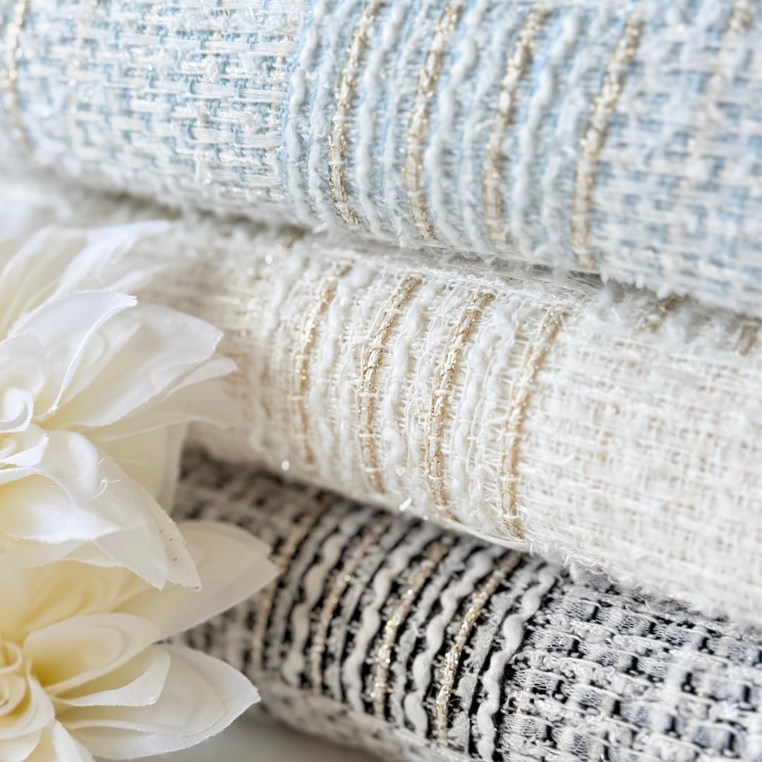 繊細なゴールド糸が美しく軽やかで調和したツイード生地です♡