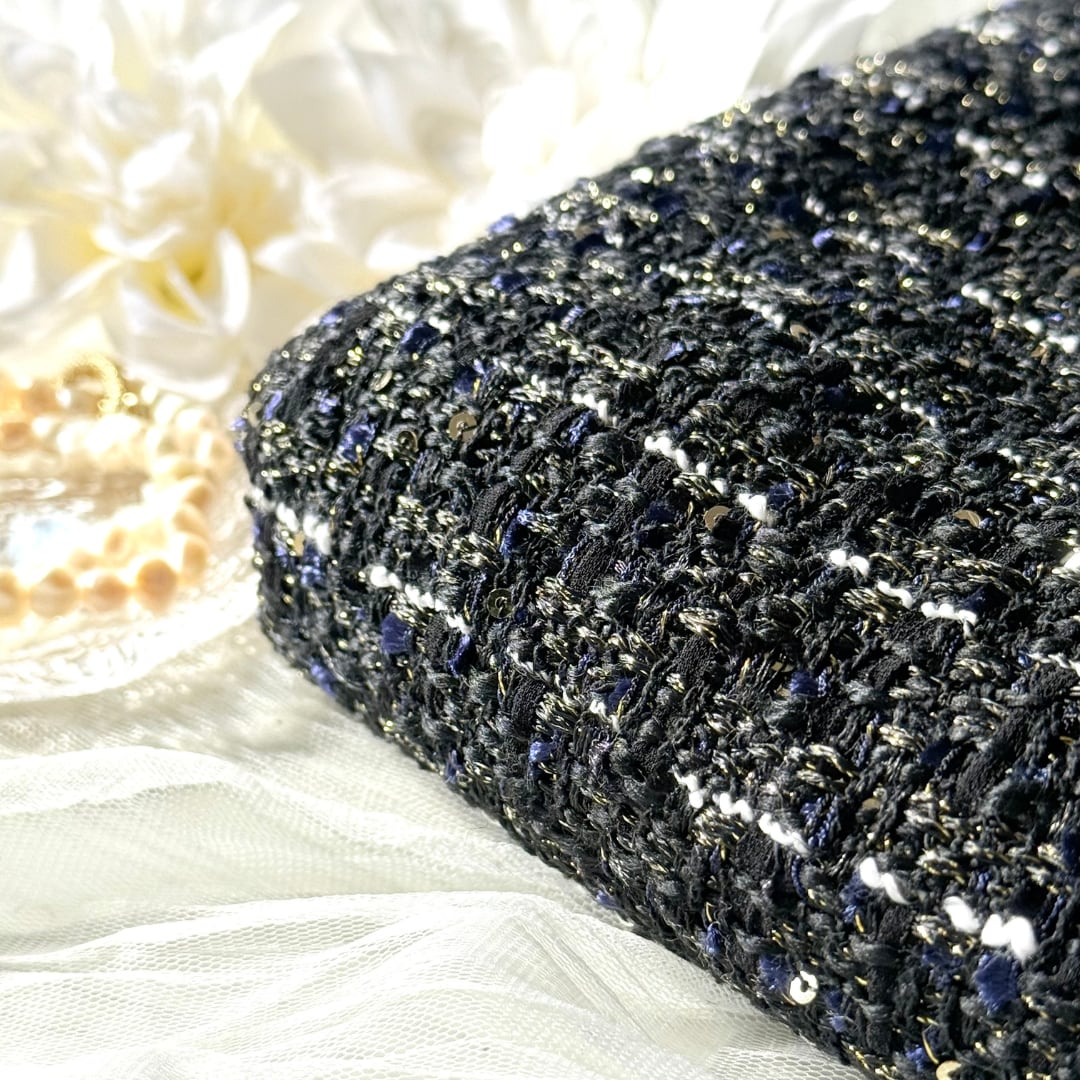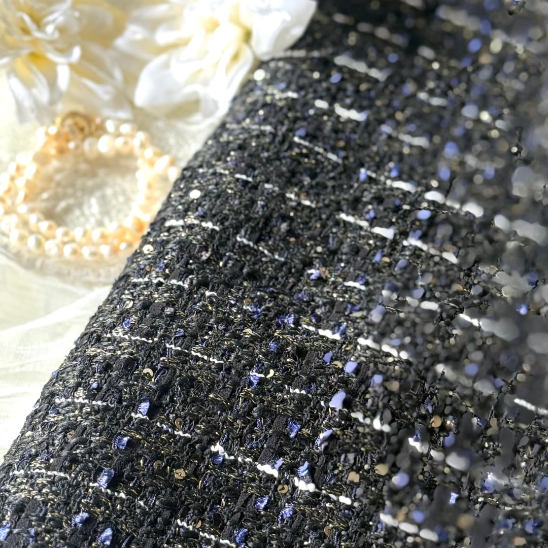 さらに小さなスパンコールを散りばめた、華やかさのあるツイード生地♡